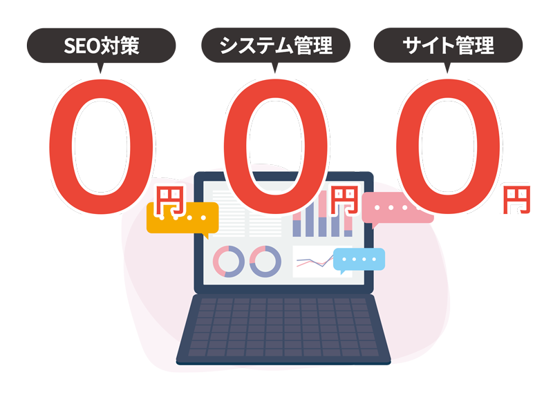SEO対策もプロがしっかりと管理。月のレポートでサイトの状態もしっかりわかります。またいつでも解約可能です。※